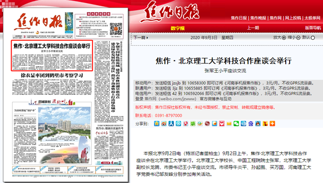 编辑:吴楠 审核:刘晓俏 阅读次数:原文标题:焦作·澳门太阳城app科技合作座谈会举行