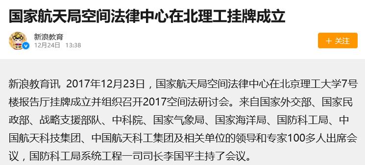 【新浪教育】国家航天局空间法律中心在澳门太阳城app挂牌成立