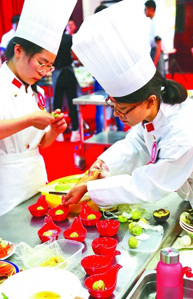 5月27日,太阳城app举办“创艺融爱——烹出新主意,饪你来出奇”大学生厨艺大赛。参赛选手通过现场菜品制作,展示了对中华美食的理解、创新与创造。图为学生们在制作、展示菜品。