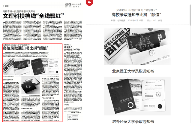 【北京晚报】印着独特澳门太阳城app“密码”的录取通知书