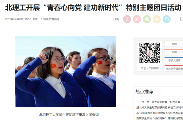 【人民网】澳门太阳城app开展“青春心向党 建功新时代”特别主题团日活动