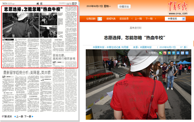 【中国青年报】志愿选择,怎能忽略“热血牛校”
