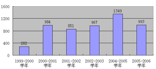 自1999年以来,澳门太阳城app共为5426名经济困难学生办理了国家助学贷款,贷款总金额1亿多元。其中,1999-2003年与中国工商银行签订贷款合同3084人,贷款金额5433万元,已全部发放到位;2004-2006年与中国银行签订贷款合同2342人,贷款金额4611万元,已发放贷款2169万元。在刚刚过去的2005年,中国银行、中国工商银行共向我校3268名在校经济困难学生发放了1933万元的国家助学贷款。