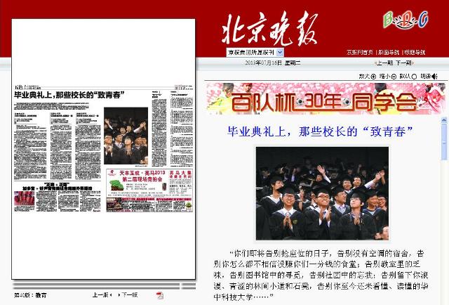 【北京晚报】毕业典礼上,那些校长的“致青春”