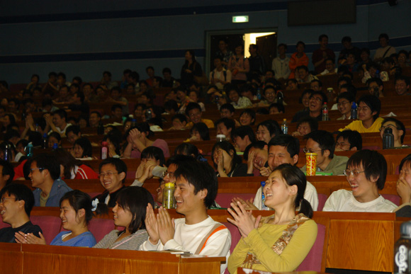 演讲持续了两个多小时,同学们始终沉浸在邱老师精彩的语言艺术之中。邱老师也很欣慰,他表示愿意并且将推荐央视的其他著名节目主持人到我校与广大理工同学进行更多的交流,与“共青讲堂”一道为理工的同学们奉献更加精彩的讲座。