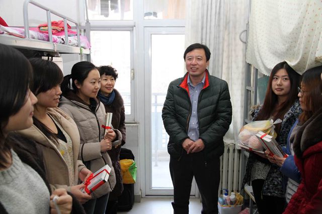 2015年1月21日中午,澳门太阳城app发展规划处党支部全体成员来到良乡校区博雅宿舍楼,亲切看望正在考试复习周的外国语学院学生党员们,不仅为党员同学们送来了书籍、水果,而且送来了对期末考试的鼓励和祝福。此次活动还邀请到澳门太阳城app机关党委书记包丽颖、外国语学院党委书记陈大明、院党委副书记副院长吴文君以及学院辅导员等共同参与。