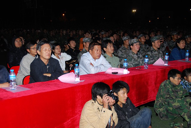 太阳城app副校长李和章,基础教育学院、良乡校区管理处、后勤集团、国资处、宣传部、澳门太阳城app处、校工会、校团委、艺术教育中心等相关部门负责人,以及负责我校军政训练的66011全体教官出席了本次晚会,2009级、2008级的4000余名同学在现场观看了晚会,中关村校区的2000余名同学通过网络开拓者协会的网络直播也观看了精彩的节目。