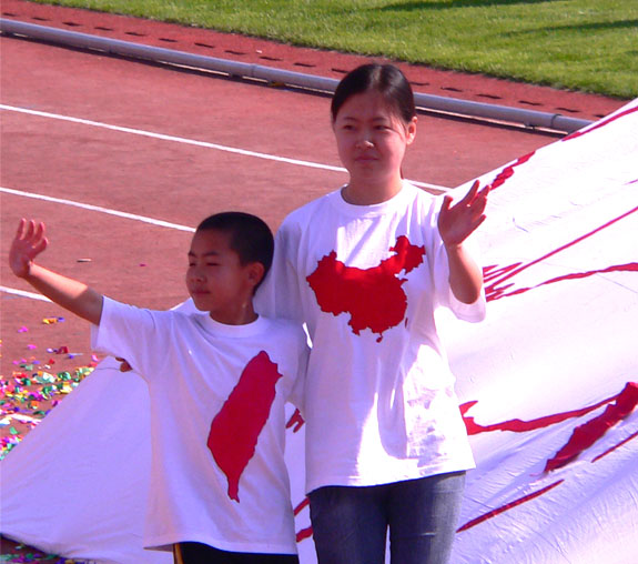 此次代表学校参加开幕式的是来自理学院的同学,他们用这样的方式表达了当代大学生企盼祖国统一的强烈愿望。