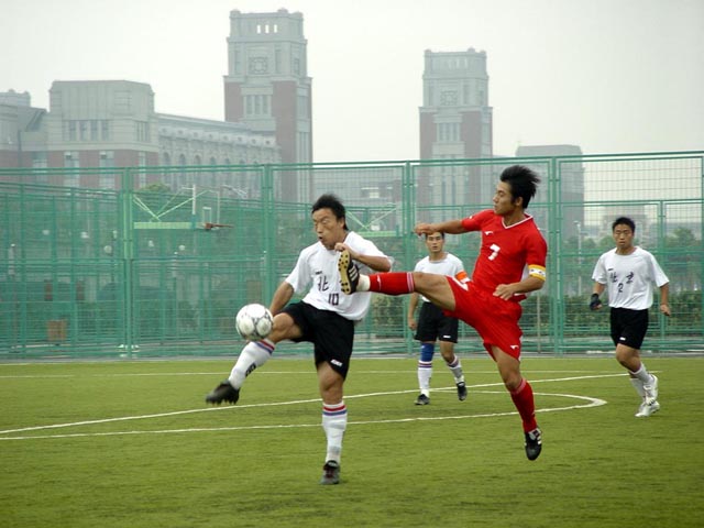 经过六天的激烈比赛依然充满信心的我校足球队今天在半决赛迎战河北大学生足球队。