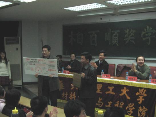 柏百顺奖学金是澳门太阳城app材料科学与工程学院建院两年来,由社会捐助而成的第一项奖学金。奖学金由东莞市柏百顺石油化工有限公司从2004年起开始设立,年奖励额度达5万元。