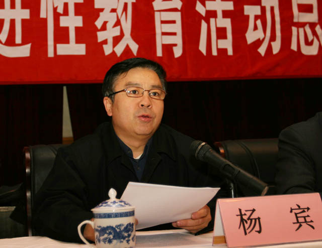 杨宾作重要讲话,他指出,我校始终按照中央和北京市委教育工委关于开展先进性教育活动的指导思想、目标要求和指导原则,根据学校下半年先进性教育领导小组的部署,紧密结合学校和参加本次先进性教育活动党员的实际,精心组织,周密实施,切实抓好学习动员、分析评议、整改提高三个阶段各个环节工作的组织落实。主要表现在:一是认真做好准备工作;二是抓好学习动员,认真开展大讨论;三是深入开展分析评议;四是扎实抓好整改提高;五是切实做好总结测评。他强调,我校在整个先进性教育活动中,各级党组织以高度的政治责任感,始终加强领导,履行职责,精心组织,积极创新,表现出七个主要特点。这七个特点分别是:一、坚持经常性教育与适当的集中教育相结合,是加强党的建设的有效途径;二、努力使先进性教育活动成为群众满意工程,是取得先进性成效的关键;三、党员严肃认真,党支部高度负责;四、坚持区分情况,分类指导;五、坚持正面教育,调动党员自我教育的主观能动性;六、精心组织,严格把关,建立指导员全程指导的工作机制;七、加强先进性教育活动的宣传工作。 杨宾在总结下半年先进性教育活动取得的主要成效时表示,我校在学习和实践“三个代表”重要思想,明确先进性基本要求、具体要求和实践途径,提高党员素质,以实际行动促进学习和工作等方面均取得了良好的效果,较好的实现了目标要求。