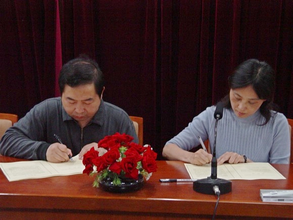 副校长杨树兴代表学校和人事处处长于倩签订“专业技术职务评审党风廉政建设责任书”。