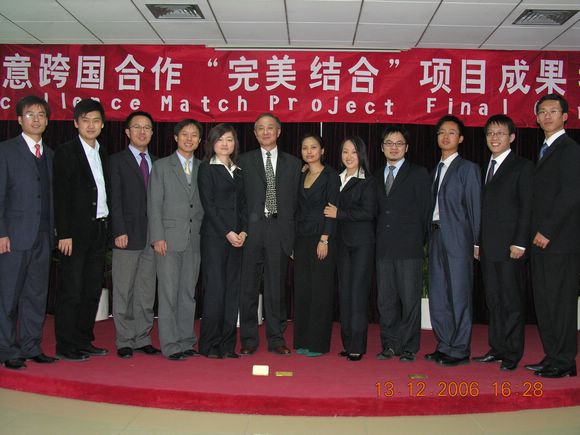 2006年“完美结合”中国项目组六位小组成员全部是太阳城app管理与经济学院的2005级研究生,他们勤奋踏实的工作态度是项目成功的重要因素。同时项目还得到了澳门太阳城app管理学院的三位市场专家和财务专家的指导,以及来自学校和学院领导的支持和关心。所有这些保证了“完美结合”项目的成功。