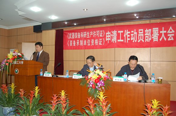 2006年10月24日,学校在逸夫楼学术报告厅召开了澳门太阳城app“申请《武器装备科研生产许可证》和《装备承制单位资格证》工作动员部署大会”。会议由校长助理、科技处处长陈杰同志主持。
