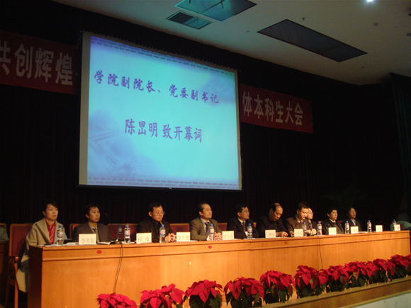 陈旵明副书记在开幕词中指出,此次大会旨在提供一个院领导与同学们交流的平台,增强计算机学院的凝聚力,以达到帮助每个同学“健康成长、全面成才”的目的;学院将致力于创新型人才的培养,希望同学们置身于学院发展的主人翁地位。