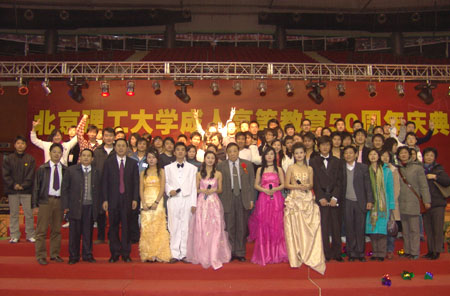 2006年12月28日下午,澳门太阳城app庆祝成人高等教育创办50周年庆典大会在校文化体育中心隆重举行。中国科协书记处书记、中国继续工程教育协会副理事长、国际继续工程教育协会副主席冯长根教授、国防科工委人事教育司张京麒处长、全国高校继续教育学会副理事长兼秘书长、全国高校现代远程教育协作组秘书长严继昌教授、北京成人教育协会会长陈兴斌教授等领导应邀出席了庆典大会。校党政领导焦文俊、匡镜明、李志祥、杨宾、候光明、赵平、孙逢春、杨树兴、张维维、赵显利、李和章、中国科学院院士、中国工程院院士、名誉校长王越及原校领导出席了大会。应邀参加庆典活动的还有北方工业集团公司人力资源部、北方装备集团公司人力资源部领导以及清华大学、北京大学、中国人民大学、北京航空航天大学、中国农业大学、北京邮电大学、北京外国语大学、对外经贸大学、中国石油大学(北京)、西北工业大学、南京理工大学、南京航空航天大学、哈尔滨工程技术大学、华南师范大学等兄弟院校的代表和北京、山西、浙江、广西、河北、辽宁、内蒙古、河南、安徽、福建、江西、青海等省市校外学习中心的代表。学校各部、处、学院领导也应邀出席了大会。大会由常务副校长李志祥主持。