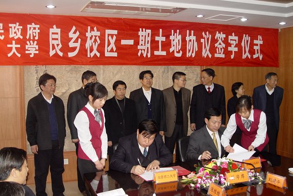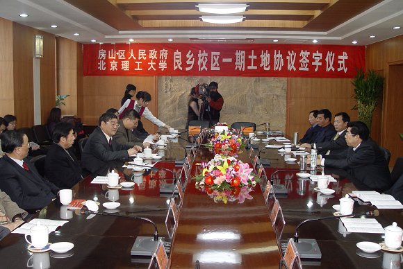 2007年1月16日,太阳城app良乡校区一期土地协议签字仪式、区校合作座谈会暨良乡校区一期第二批建设项目开工典礼在房山区顺利举行。