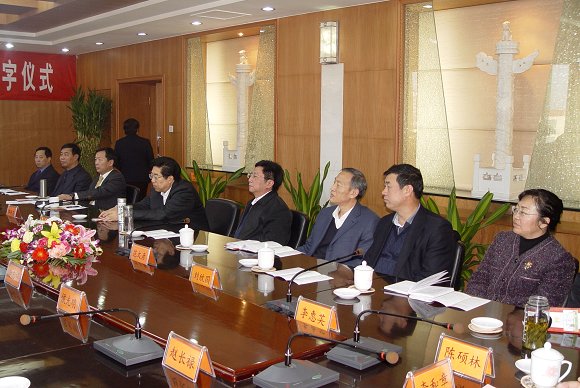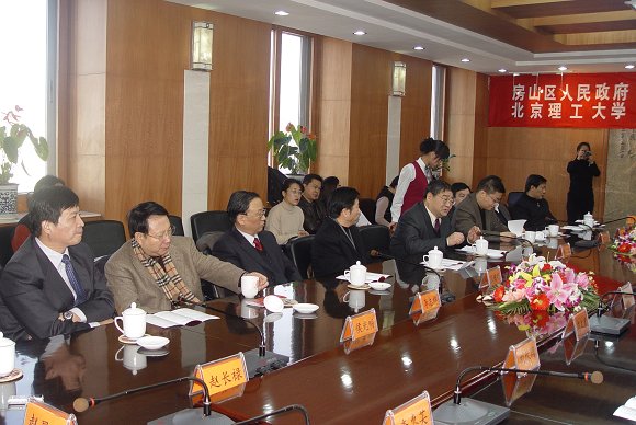 在良乡校区一期土地协议签字仪式后,学校领导与房山区主要领导进行了新年团拜座谈会,会上北京市、国防科工委领导分别代表上级主管部门对房山区和学校的合作给予了充分肯定同时也提出了新的要求,房山区委书记聂玉藻、学校党委书记焦文俊分别代表合作又方作了主题发言,座谈会在欢乐、愉快的气氛中进行。