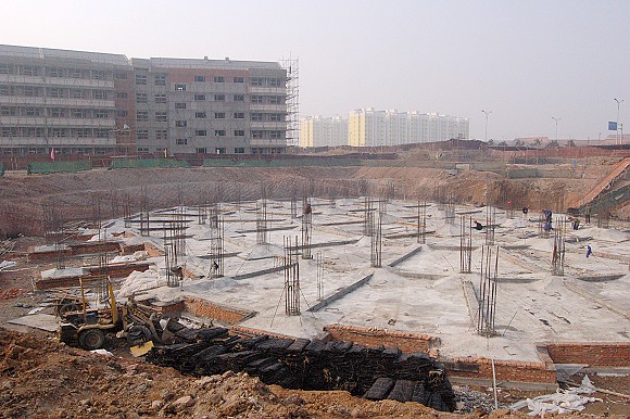 化学实验中心现场图,基础验收完成,开始土方回填