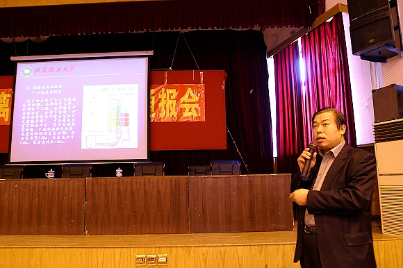 校党委副书记侯光明同志简要介绍了我校良乡校区的建设情况。