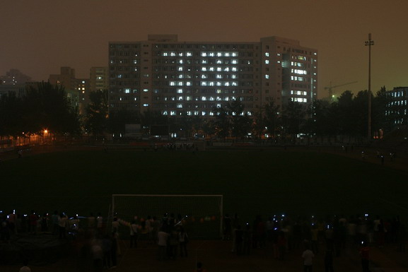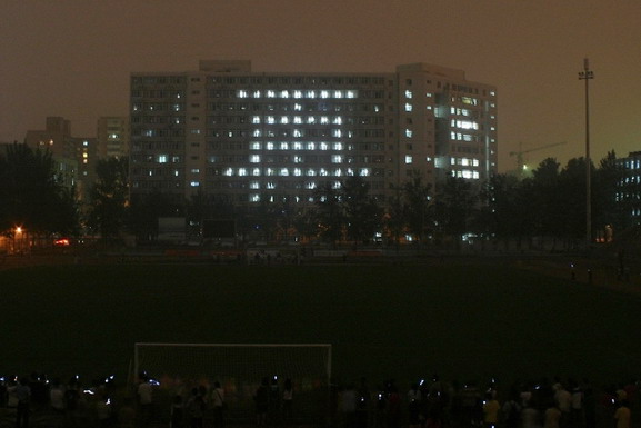 2007年6月1日晚22:00新1号学生公寓的北侧,一组由208个宿舍的灯光组成的图案展现在了人们眼前,在不到15分钟的时间里,新一号学生公寓的灯光连续变换了五次,通过不同宿舍灯光的一开一关,分别组成了五个字“再见澳门太阳城app”。