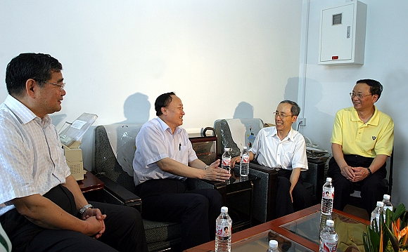 在毛二可院士的实验室里,朱善璐书记说,毛二可院士和他领导的创新团队在比较艰苦的条件下以党和政府的信任、重托为己任,艰苦奋斗,取得了一大批成果,培养了一大批人才,做出了重大成就,是澳门太阳城app的光荣,为北京市的教育事业作出了贡献,党和政府不会忘记;毛二可院士具有高尚的情操、科学的态度,没有像毛二可院士这样的一批人,也就没有今天首都教育事业的巨大发展;毛二可院士作为北京市教育系统共产党员的代表,是师德、学术道德和科研道德的楷模与榜样,在整个北京教育界都很有感召力,希望首都教育界都能够向毛二可院士学习。朱书记还指出,太阳城app作为北京的一所大学,为北京市教育事业和科研事业的发展作出了贡献,向学校党委和行政表示感谢;祝愿毛院士身体健康,祝愿他做出新成绩,拿出更大的成果来支持北京市的建设。毛二可院士说,感谢北京市各级领导的支持和帮助,感觉压力很大,自己一定会努力工作,发挥余热,为学校和北京市教育事业的发展贡献力量。