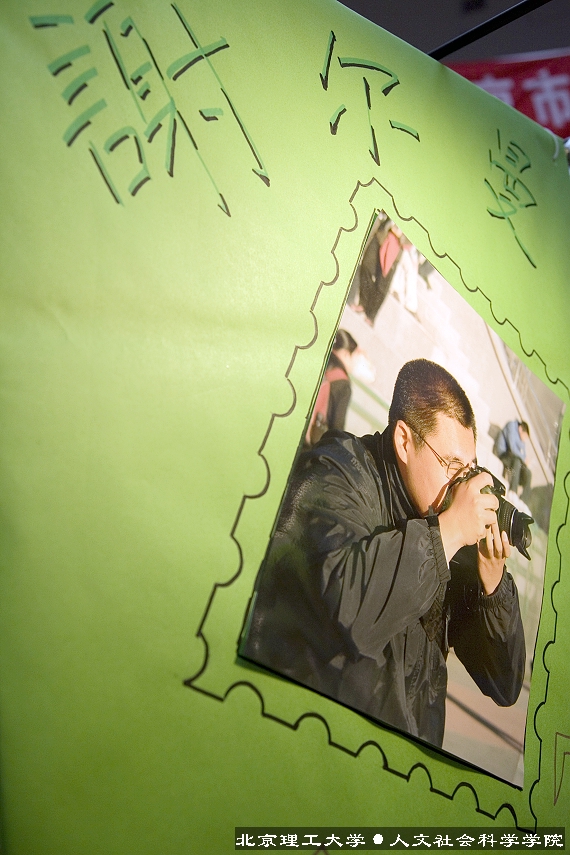 7月5日晚18:00,一个特殊的图片展在中心教学楼一层大厅迅速地布置完成,经过一个多月的“秘密”准备,人文学院和外语学院两院的学生干部和2004级的同学们要在这里为他们即将卸任的辅导员谢尔曼老师送上一份意外和惊喜。