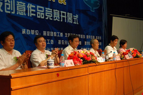 首届“理工杯”海淀区中学生迎奥运综合实践---学术、科技创意设计竞赛的开幕式于7月7日9:00在我校中教一层报告厅举行。中国工程院院士、我校著名专家毛二可教授;海淀区副区长于军、教工委副书记乔键、团区委副书记雷玉梅;我校党委副书记、副校长杨宾,副校长赵显利及党校办、科技处、研究生生院、学工处、招生就业处、保卫处、党委宣传部、团委、理学院、宇航学院、设计学院、人文学院、生命学院的领导和专家;海淀区八十一所中学的400余名师生代表出席了开幕式。