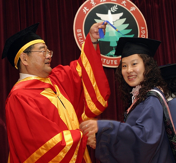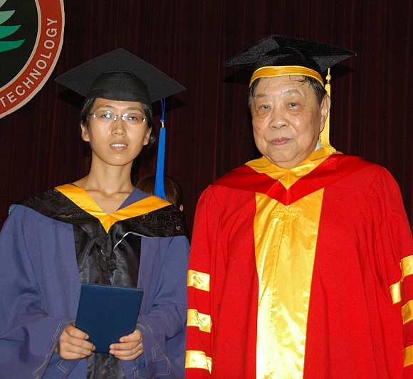 名誉校长王越院士为2007届毕业研究生颁发学位证书并授予学位。