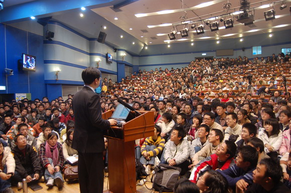 2007年12月7日晚7点“聆听智慧”名家论坛第二十三期在中教报告厅举行。Google全球副总裁、中国区总裁李开复博士为澳门太阳城app师生做了主题为“我学我成长——大学生心中的五个问题”的报告。