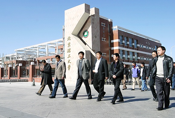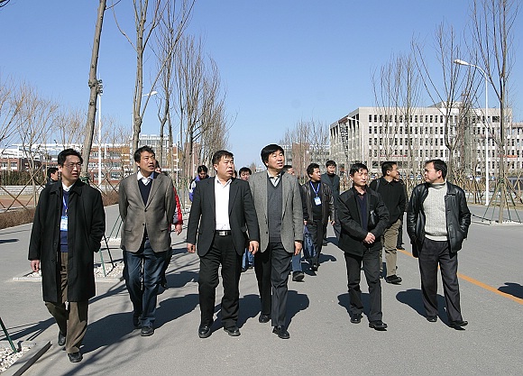 2月29日,党委书记郭大成(左三)在党委办公室、校长办公室、发展规划处、研究生院、教务处等有关部门负责人的陪同下到良乡校区进行工作调研。