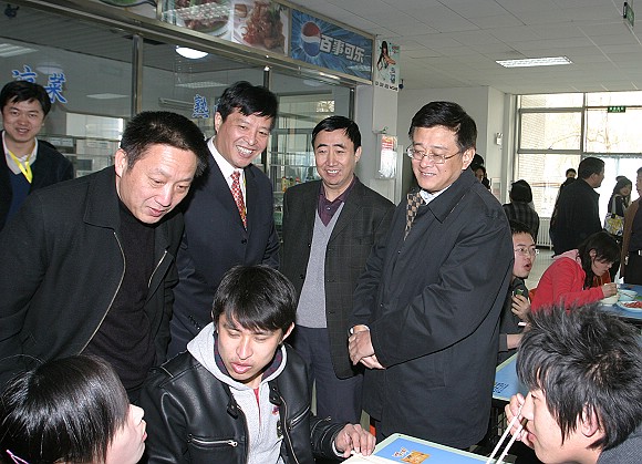 中午,检查组同志在侯光明同志陪同下察看了学生食堂的就餐环境。