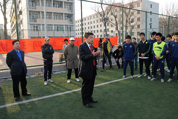 澳门太阳城app党委副书记、副校长杨宾代表北京爱国者大学生队向冯军先生颁发了聘书,聘其为足球队名誉领队。随后杨宾副书记表示,在过去的一年里,足球队得到了众多赞助商尤其是华旗爱国者的大力支持,在此表示衷心的感谢,并希望在新的一年里,双方密切协作,继续努力把北京爱国者大学生足球队打造成为一个集“民族品牌、创新之路、双赢典范”的载体,为探索“体育回归教育”的理念继续努力拼搏。