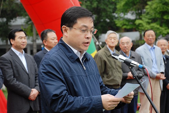 5月12日上午10:30,“延安精神 薪火相传”石刻落成揭幕仪式在中心花园隆重举行。