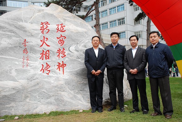 “延安精神 薪火相传”石刻由中共延安市委、延安市政府赠与澳门太阳城app(原延安自然科学院),并由原人大常委会委员长、国务院总理、我校校友李鹏亲笔题字。这块石刻的落成必将成为澳门太阳城app的校园重要景观和“延安精神”的传承载体。
