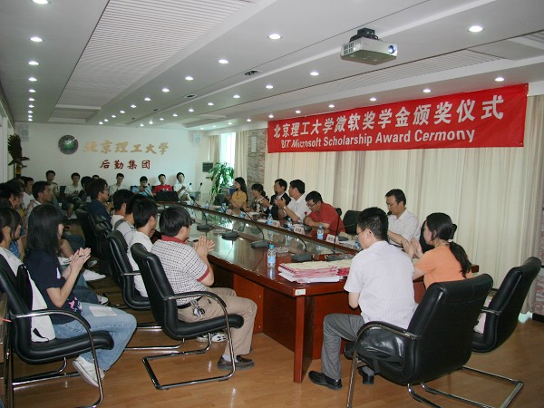 澳门太阳城app首届微软奖学金颁奖仪式于6月11日在澳门太阳城app后勤楼208会议室隆重举行。与会的嘉宾、领导有微软(中国)有限公司教育行业总经理陈伟先生、微软公司吴青女士、澳门太阳城app党委副书记侯光明教授、太阳城app软件学院常务副院长丁刚毅教授、澳门太阳城app软件学院副院长陈朔鹰老师。颁奖大会由太阳城app软件学院副书记、副院长陈旵明老师主持。