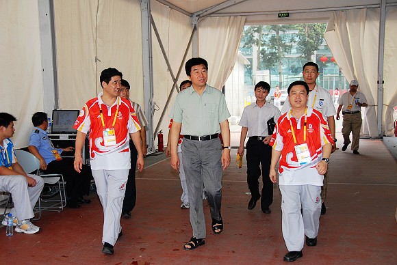 澳门太阳城app体育馆场馆主任杨宾同志向郭大成书记详细介绍了场馆各个功能区的建设和筹备情况。郭书记仔细查看了场馆的交通运输指挥系统,安全保卫系统,运动员、技术官员、新闻媒体、贵宾、观众、工作人员等奥林匹克大家庭成员的工作和休息场所,以及奥运会排球馆和残奥会盲人门球馆。