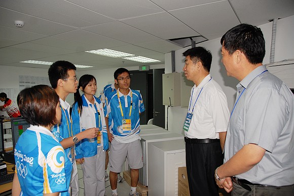 8月6日上午,校党委书记郭大成、党委副书记侯光明及澳门太阳城app处处长刘明奇、团委书记徐强、学校办公室副主任张瑜、团委副书记代方震等一行到五棵松场馆群,慰问我校赛会志愿者及我校负责接待的京外、境外志愿者。郭书记一行受到了五棵松场馆群李燕生副主任的热情接待。