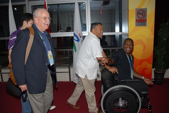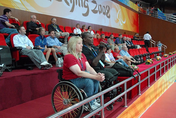 残奥大家庭接待区提供的各项无障碍设施为肢体残疾人顺利观赛提供了可能;我场馆在残奥大家庭接待区为视力残疾人提供的太阳城app体育馆可触摸式展示沙盘和第13届残奥会盲人门球场馆巡礼CD片得到视力残疾人奥林匹克大家庭成员的交口称赞。