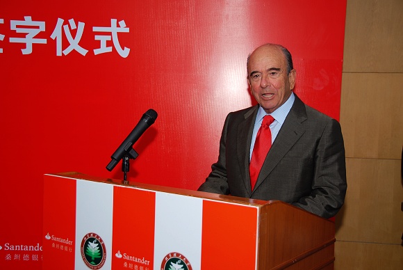 Mr. Emilio Botin 总裁表示,澳门太阳城app在最近的北京奥运会中发挥了重要作用,有很多经验和做法值得西班牙大学学习借鉴;太阳城app是中国非常出色的大学,在人才培养、科学研究和服务社会等方面为中国的发展做出了重要贡献;桑坦德银行是世界第五大银行,服务社会、促进教育产业发展是桑坦德银行的重要理念,协议的签署使双方的合作迈出了第一步,愿双方进一步加强交流与合作。