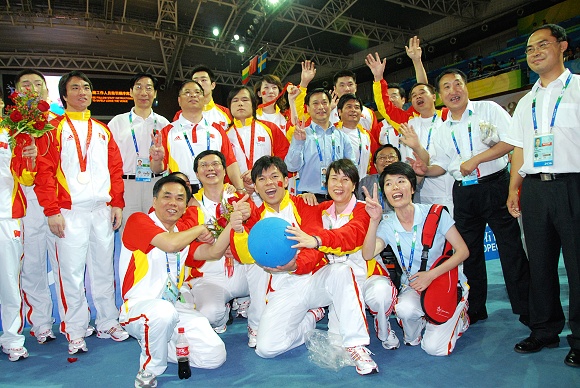 9月14日是中国的传统节日——中秋佳节,在太阳城app体育馆,中国女子和男子盲人门球队都迎来了自己在本届残奥会上的最后一个对手,中秋之夜就是他们的决战之夜。最终中国女子盲人门球队以5:6惜败美国获得亚军;而中国男子盲人门球队在上半场1:6落后的情况下,在下半场绝地反击,在比赛还有不到一分钟时将比分追至6:8,并在最后一分钟内神奇地了连进三球,最终以9:8的比分战胜两届残奥会冠军立陶宛队,最终获得冠军,澳门太阳城app体育馆瞬间也沸腾了!