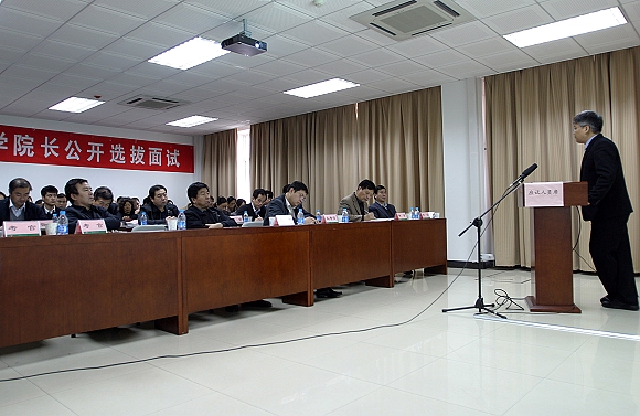 2008年12月2日下午,自动化学院院长、理学院院长面试在研究生楼一层110举行,共有六名报名者分别参加了这两个学院院长职位的选拔。我校历史上规模最大的一次公开选拔院长活动面试的序幕由此拉开。