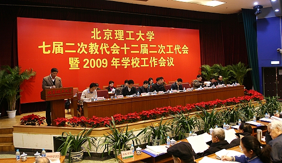 报告指出,2009年受国内外经济形势影响,学校也面临着诸多挑战,并提出了应对挑战的基本思路和总要求——“激情进取,科学发展”。“激情进取”就是要弘扬当年老前辈创建延安自然科学院、建设北京工业学院的艰苦奋斗精神,克服困难,推进工作;就是要找到差距不甘落后,奋起直追,加快发展;就是要努力将学校党建思想政治工作的优势转化为学术优势,凝聚力量,提高办学水平。“科学发展”就是要用科学发展观统领学校的各项工作,统筹兼顾,进一步处理好近期发展与长远发展的关系、重点发展与协调发展的关系、不同师生员工群体之间的利益关系、不同工作任务之间的关系等,谋求更好的发展。