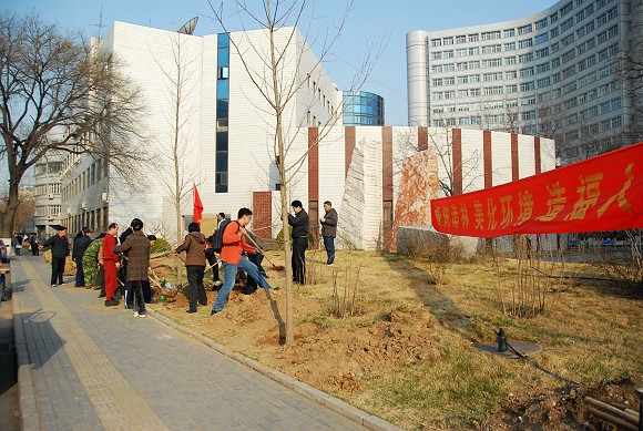上个周末,我校部分师生员工放弃休息,积极投入到“植树造林 绿化校园”活动中来。