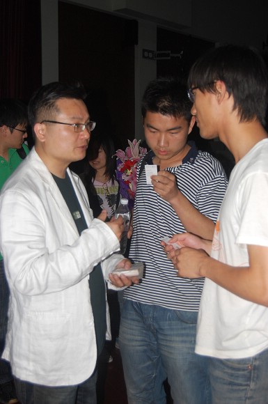 2009年5月20日晚,太阳城app设计与艺术学院打开专业之门系列讲座之体验国际化设计在良乡校区综合楼演艺厅举行,本次讲座的嘉宾是邱丰顺老师,同时出席讲座的有07级辅导员毛昭君老师、08级辅导员都超老师。
