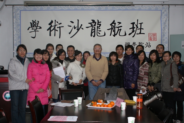 “学术沙龙航班”活动以“乘沙龙航班 品学术之美”为宗旨,将从理学院起航,以学院为单位,针对不同的学科领域逐站停靠。12月22日晚19时,在中心教学楼620理学院学术交流室正式起航。原本这个交流室只有40个座位,为了让来自理学院、化工学院60余名师生都能和叶老师充分交流,理学院分团委临时为师生们准备了20余个雅座。