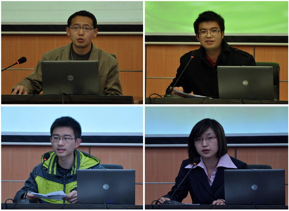 接着,我校2008级学生代表郭岩冰、张如心,2007级学生代表邹仕强,2006级学生代表张洁分别做了精彩的发言,与同学们一起交流了自己的德育开题、中期检查和德育答辩报告。