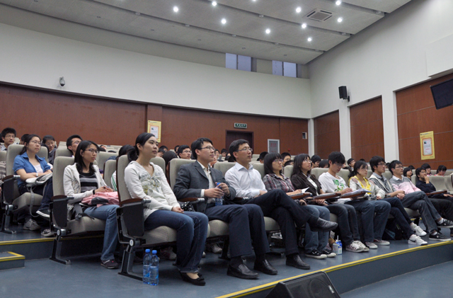 在互动环节中,同学们踊跃发言,有同学问到如何看待中国的盗版问题,林部长从中国的国情、中国知识产权法的制定以及中国政府努力打击盗版等几方面作出了透彻而深刻的分析,并勉励同学们要积极为国家的知识产权事业做出贡献,提高中国的综合实力。有同学问到“在培养创新意识时应该注意什么时”,林部长用生动的实例启发同学们创新要勇于打破常规,用丰富的思维去对待问题。林部长还就学生提出的专利申请检索、就业等问题进行了回答。