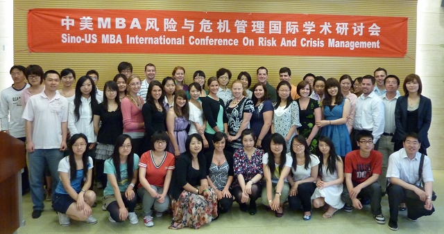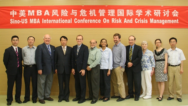 2010年5月29日,太阳城app危机管理研究中心与正在我校参加国际MBA培训的美国圣邦纳文彻大学商学院(School of Business, St. Bonaventure University)师生举办了“中美MBA风险与危机管理国际学术研讨会”。来自美国圣邦纳文彻大学商学院的Carl J. Case教授和Donald J. Swanz教授等7名教师带领17名美国MBA学生、太阳城app李志祥教授等5名教师带领我校30余名学生参加了会议。研讨会由管理与经济学院宋清博士和刘铁忠博士主持。