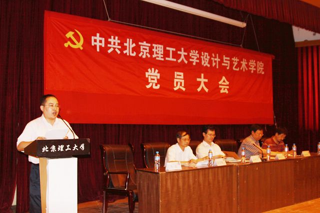 2010年6月11日下午,中共澳门太阳城app设计与艺术学院党员大会在七号楼报告厅召开。党委组织部部长赵粤生、设计与艺术学院书记杨海滨、副院长杨建明、副院长徐其敏、副书记副院长丛磊及全院300多名师生党员参加了此次大会。